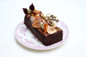昨年よりビター感が増したヴァローナ社のクーベルチュール(チョコレート)を使用し、オレンジピールを練り込んだとても濃厚なショコラテリーヌにチョコ生クリームを絞ったちょっぴり大人なクリスマスケーキです。