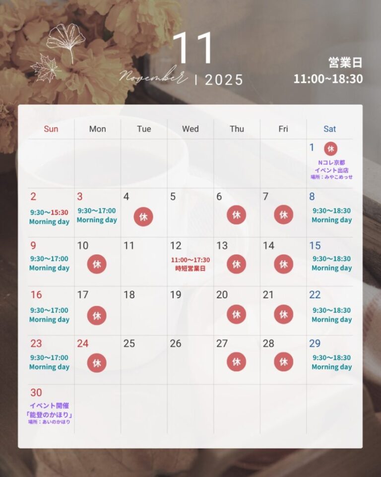 営業時間 11:00?18:30(日曜日のみ11:00?17:00)定休日 不定休
